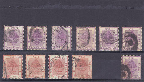 Stamps in first image include a fine MM Half Penny stamp as well as a Is Fiscal stamp. Includes several very unusual cancellations.