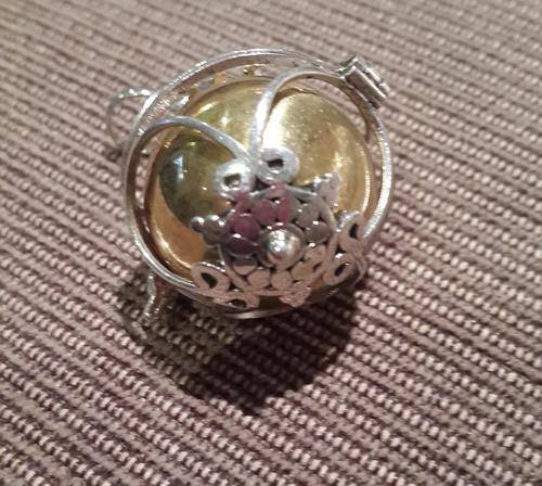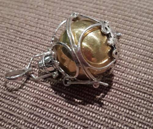 LARGE MAGNIFICENTLY CRAFTED MYSTIC BELL (BELL IS IN BRASS) CAGE IS SOLID SILVER WITH A MOONSTONE - IMPORTED DIRECTLY FROM BALI INDONESIA - DIAMETER SIZE IS THE SAME AS A R5.00 COIN - THE BELL IS GORGEOUS
