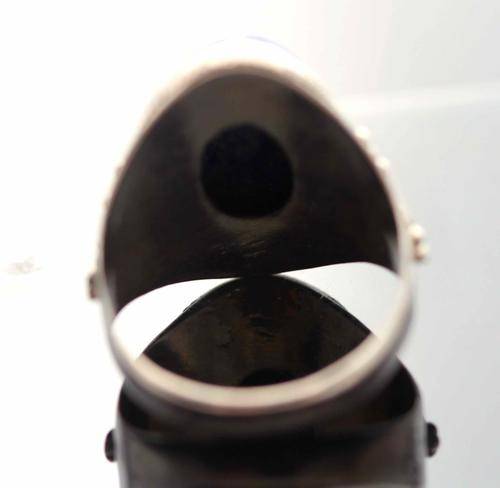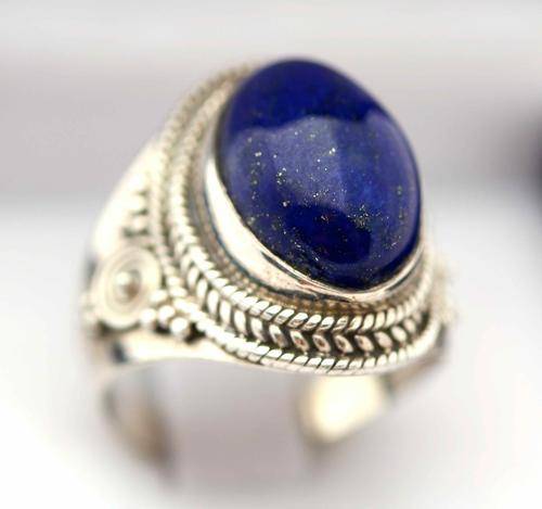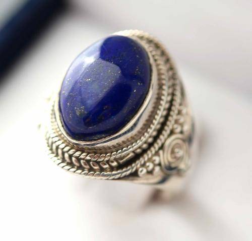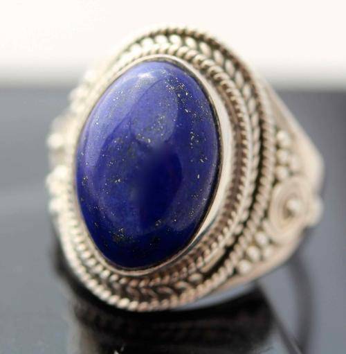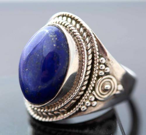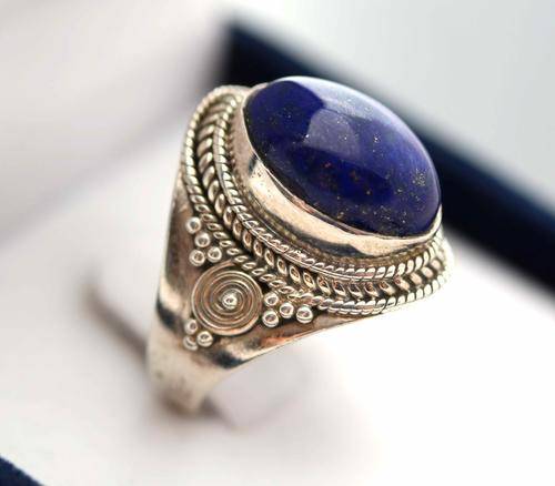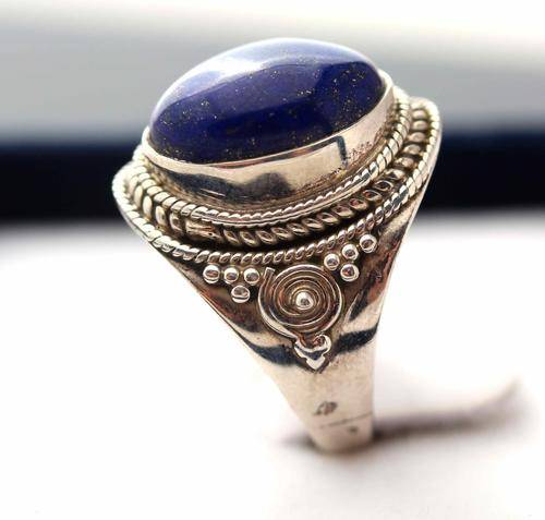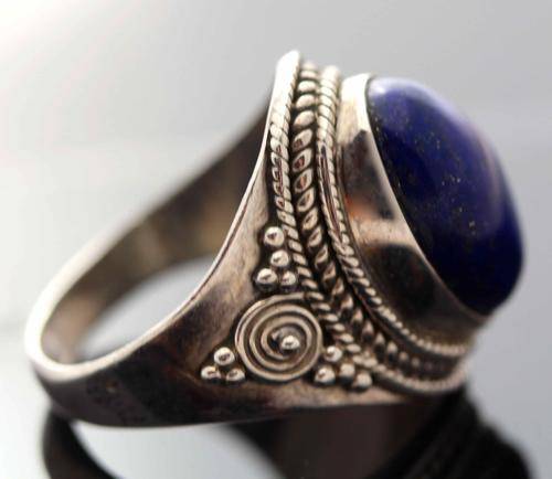HUGE LAPIS LAZULI STERLING SILVER RING. WIDE ORNATE SHOUDLER AND SHANK!