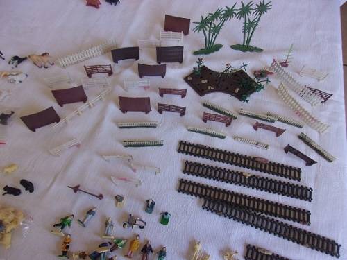 Huge lot of 76 miniature Hornby Railways people & 73 miniature Hornby Railways farm animals. These miniature figurines date to the 1960s. The lot consists of: