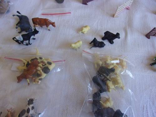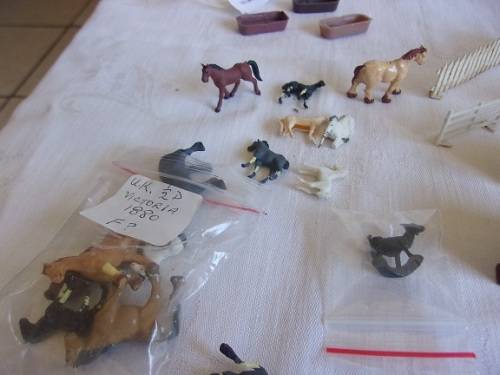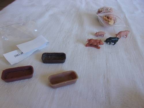 Farm animals: Consist of 12 horses, 11 cattle, 18 sheep, 20 pigs, 6 fowls, 1 goat and 2 dogs, as well as 3 troughs, some fencing and some foliage.