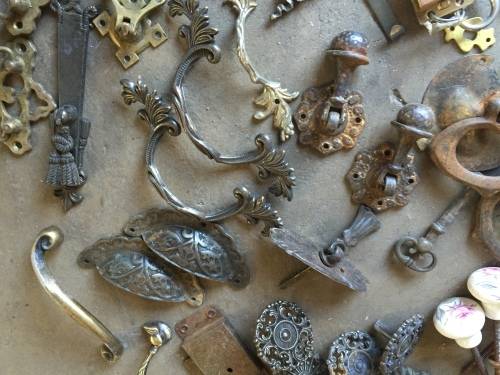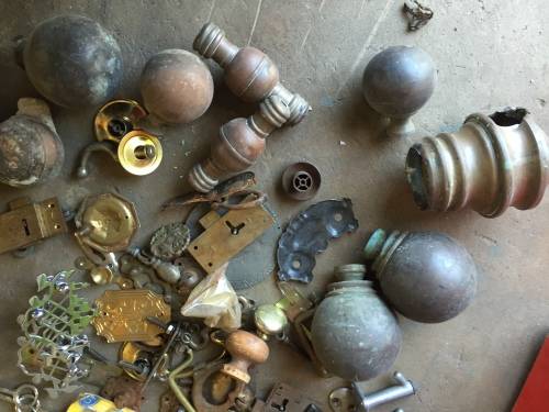 Huge lot of vintage cupboard handles, fittings and copper bed parts. There's even a set of brass bear claw covers for table legs. Ideal for restoration purposes. Please inspect the pictures carefully as it forms part of the description. The parcel weight is approxamitely 4kg and packaging and postage via SAPO will be R75. Courier countrywide @ R110.