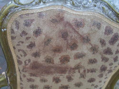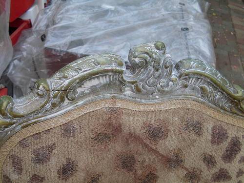 Floral detail on the back leg of chair