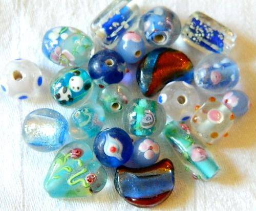 22 LAMP WORK BEADS 20 CRYSTALS 10mm x 8mm