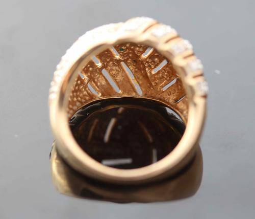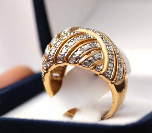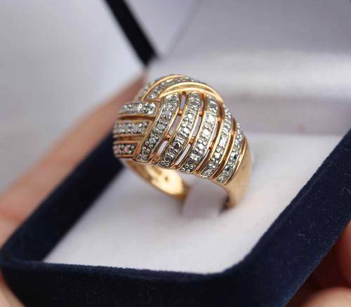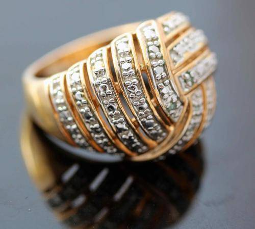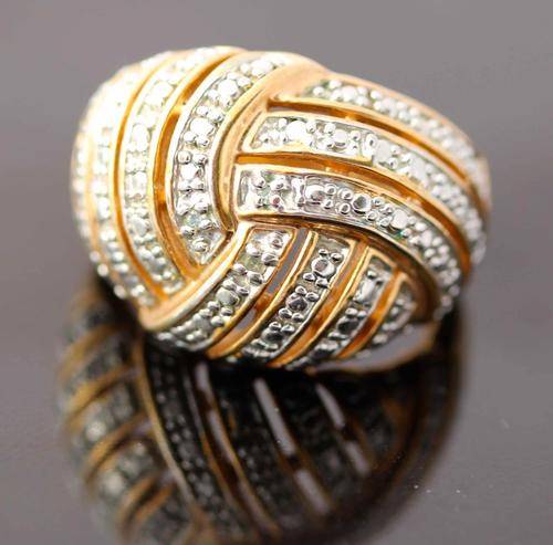 HUGE STERLING SILVER RING, DIAMOND ACCENT. GOLD COLOUR FINISH. 7,7 grams!!