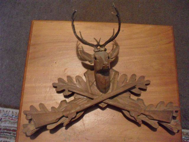 DEER(WITH GLASS EYES )/HORNS/SADDLE BAG/RABBIT/PHEASANT 2 RIFLES AND BOTTOM FOLIAGE IS UNDAMAGED
