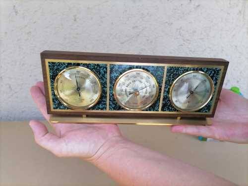 Huger Barometer west Germany 3 in 1 desktop - PRACISIONS - RELATIVE HYGRO - C - 100% WORKING - AMAZING CONDITION - STUNNING WITH CARPET ON THE BOTTOM - 27 CM x 11 CM