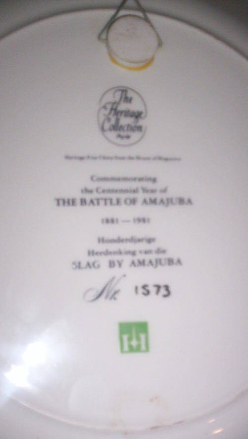 Huguenot Royale The Heritage Collection "Battle of Amajuba" wall plate