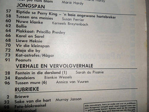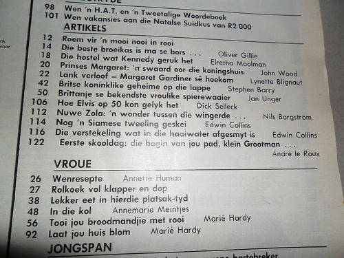 ( SLEUTEL WOORDE ; OU AFRIKAANSE TYDSKRIFTE , KELLY LE BROCK , GENE WILDER , WOMAN IN RED , NANCEFIELD HOSTEL SOWETO , PRINCESS MARGARET , MARGARET GARDINER MEJ. HEELAL , MEJ. SUID AFRIKA , MISS UNIVERSE , MISS SOUTH AFRICA , CAROLYN CHESHIRE , 80'S MODES , BOLLIE , PRISCILLA PRESLEY , KAREL EN SAREL , KAREL KRAAI , LIEWE HEKSIE , MAJA DIE BY , HONDA PRELUDE , 1985 CARS , ELVIS PRESLEY , ZOLA BUDD , ATLETIEK , JANNIE MOMBERG )