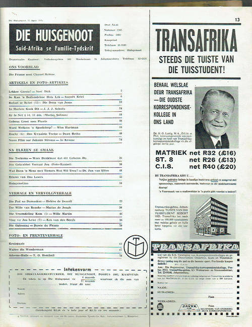 Goeie toestand vir tydskrif - Onrus in Haarlem - SA se kwaaiste rugby toetse - Handskrif artikel - Welkom word n spookdorp