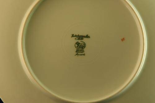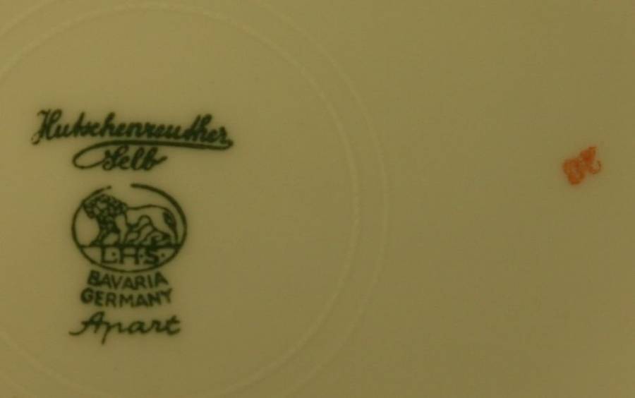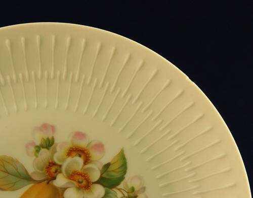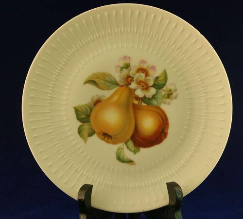 On offer is Hutschenreuther 'Apart' side plate measuring 200mm. It consists of a delicate fruit-leaf-and-pear flower design with two concentric interlocking and radiating circles. It appears to date from the 1960's.