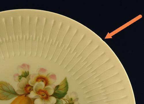 It has very low pattern and cutlery wear. It does have a chip (see gallery) but no cracks or crazing.