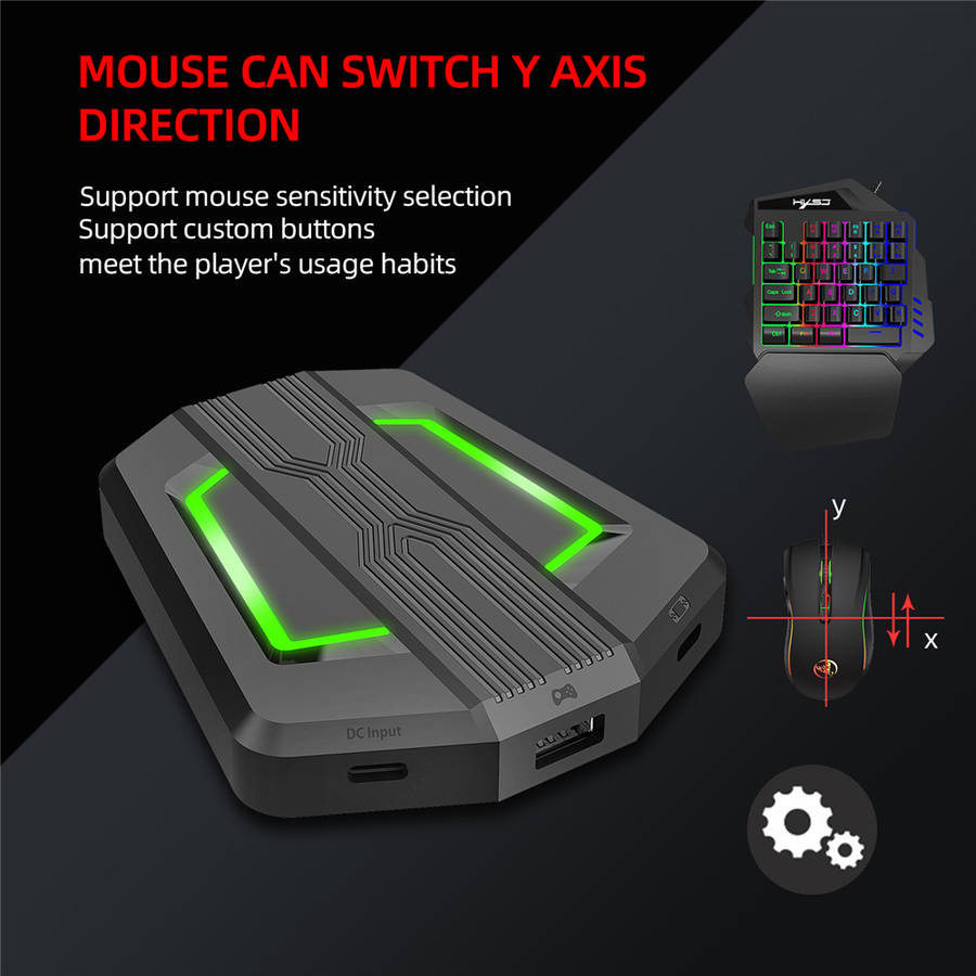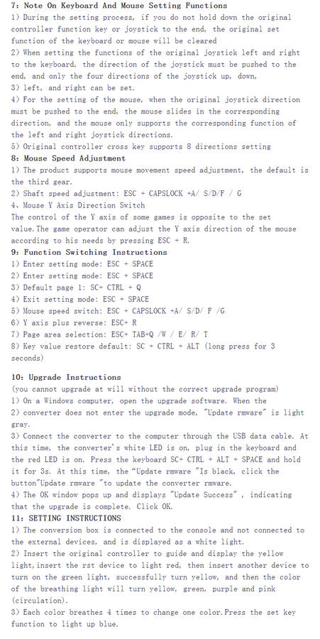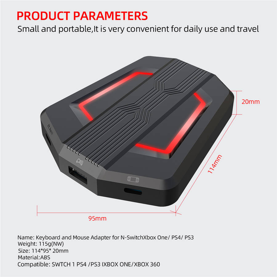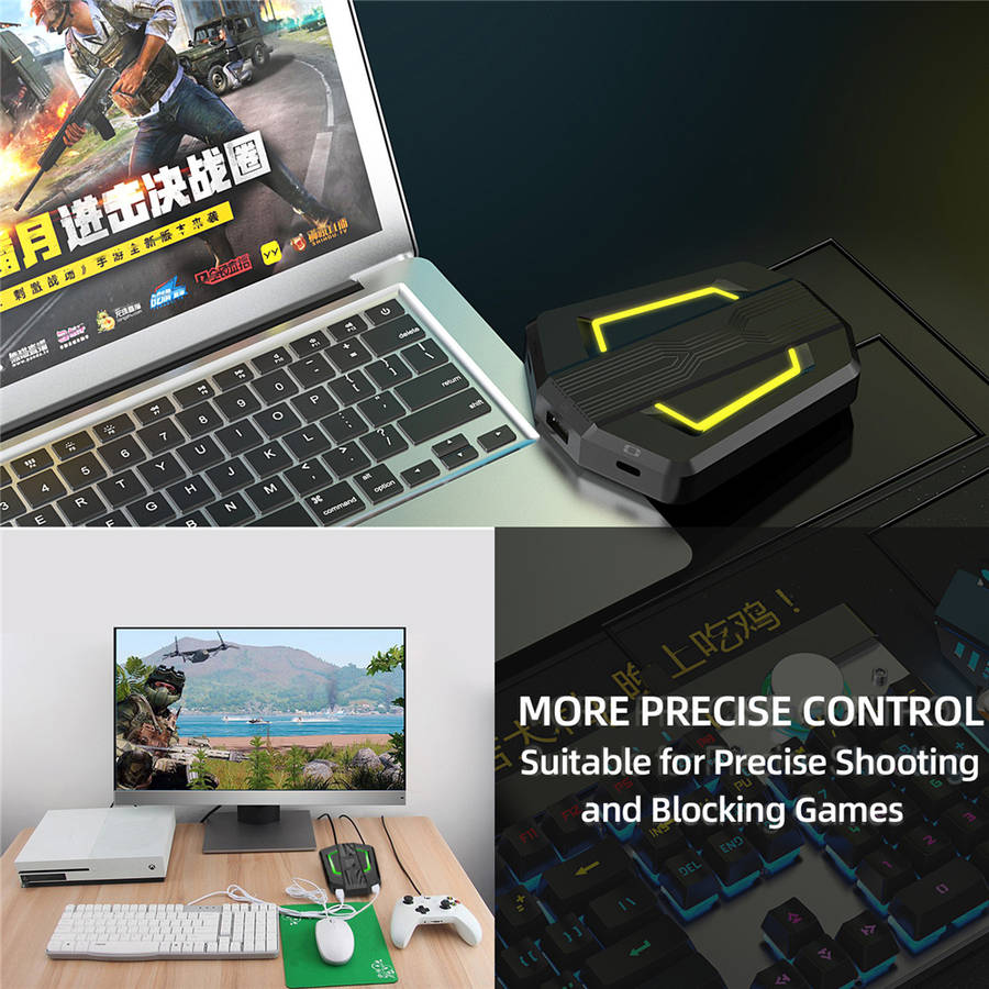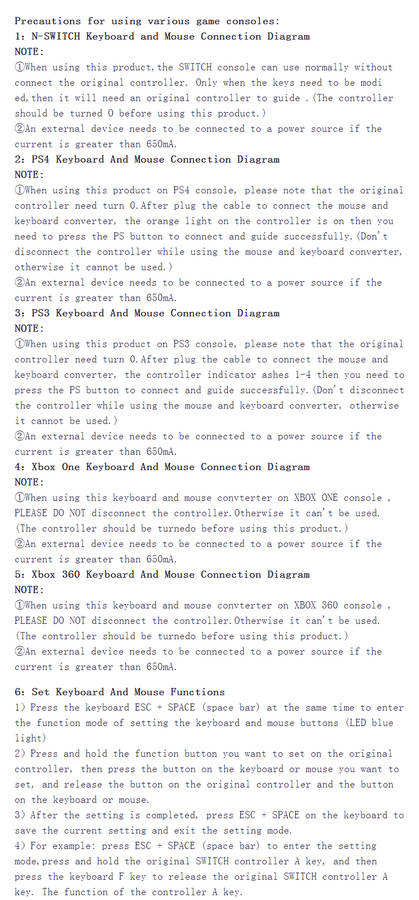 2ï¼Plug the original wired controller to guide the yellow LED light.Insert the keyboard then LED red light ;insert the mouse then LED green light.After all connected,the LED will breathe in circulation from yellow,cyan,purple and pink.