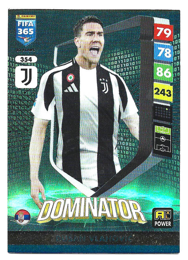 DUSAN VLAHOVIC - PANINI FIFA 365 COLLECTION 2025 - FOIL "DOMINATOR" TRADING CARD 354