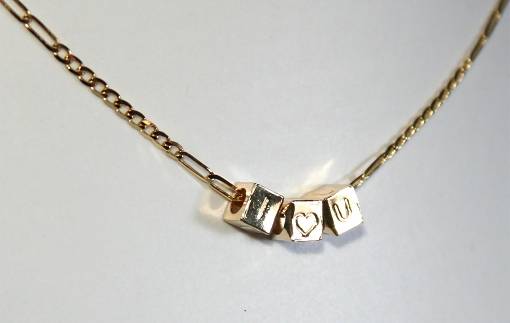 4 sided, open, made to slide along a chain. Each cube is engraved on all 4 solid sides.
