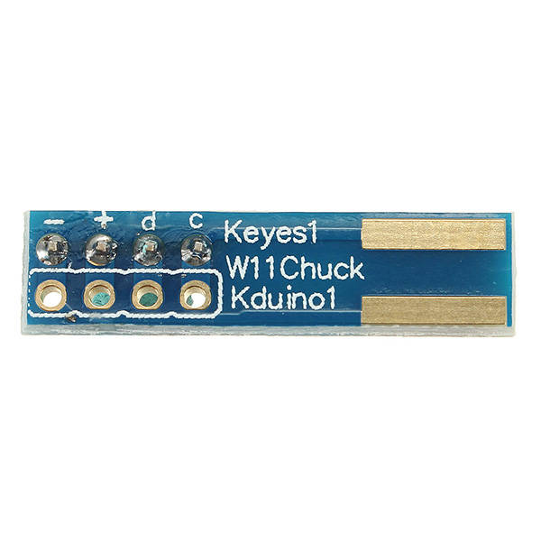 Wiichuck is a breakout board for Wii-Nunchuck. Use this shield to achieve communication between nunchuck with for without broking the controller for Wii Nunchuck. It is grate for DIY projects. Dimensions: 1.02 in x 0.47 in x 0.28 in (2.6 cm x 1.2 cm x 0.7 cm)