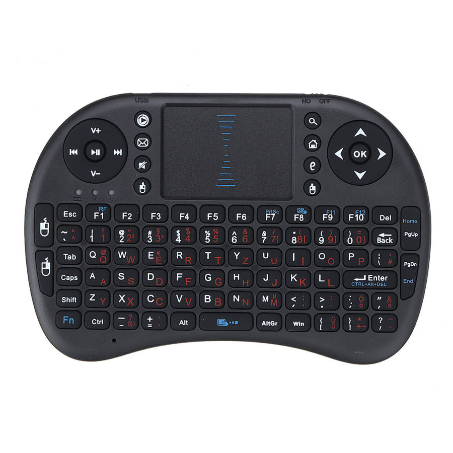 2.4G wireless connection up to 10 meters German and English bilingual layout Compact size, light weight, easy to carry Compatible with TV box, Smat TV, Mini PC and computer Built-in rechargeable battery, convenient for use