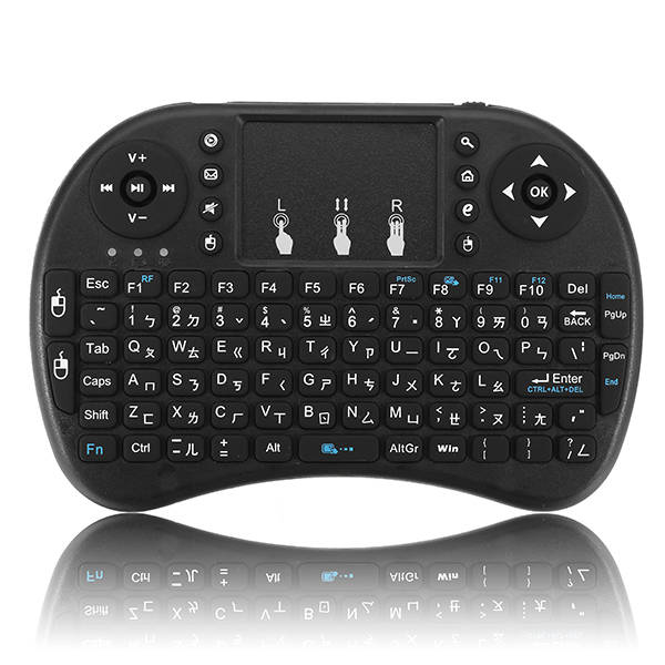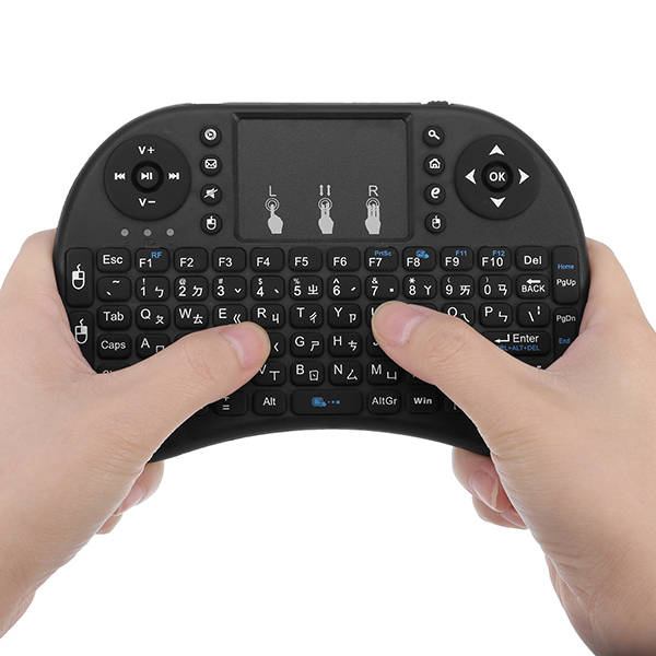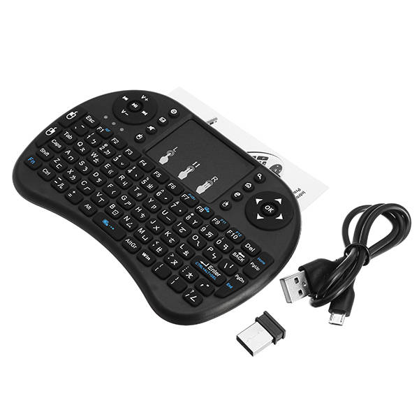 Features: PC Remote for Home entertainment , multi-media Education, Training ,Conference ,presentation controlled with computer. Mini wireless keyboard for Windows, Linux, for Mac OS, for Google/Android/Smart TV RF 2.4G connection Max Distance:10 M Scrollbar/multi-touch and multi language supported QWERTY 92 keyboards Plug and Play Built-in rechargeable Li-ion battery(300mA) Charge: DC 5V Standby time: about 300 hours Package Included: 1 x I8 Taiwanese Version Mini Keyboard 1 x USB Cable 1 x USB Receiver 1 x Instructions 1 x Rechargeable Li-ion Baterry