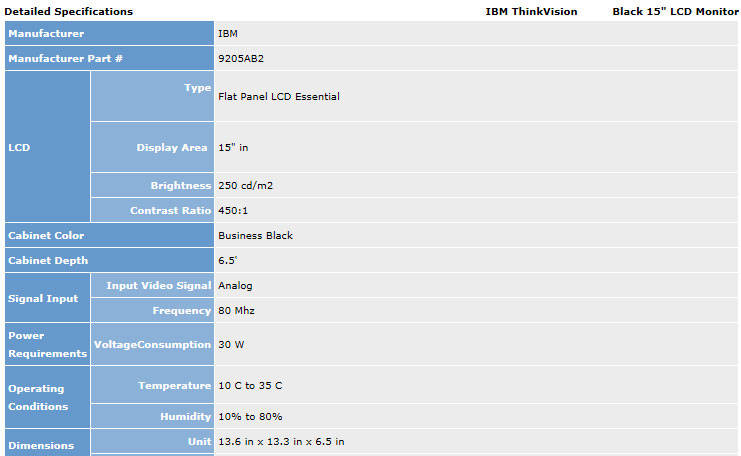 IBM / LENOVO THINK VISION 15INCH LCD SCREEN