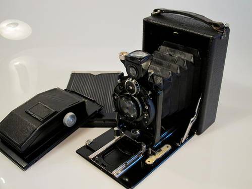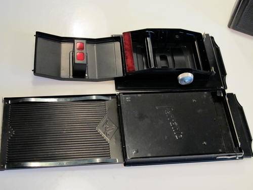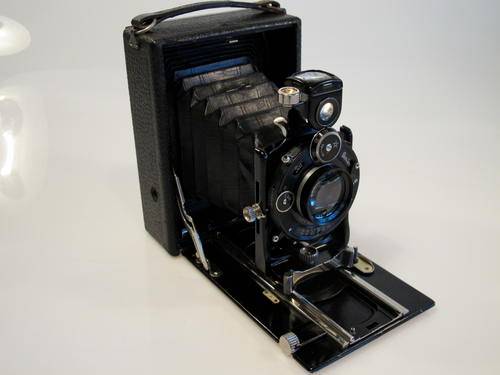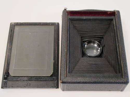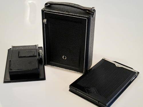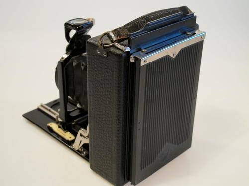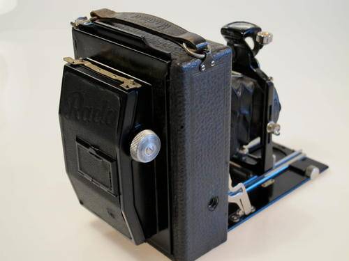 The camera is supplied with a Rada 120 Roll film back and an Agfa Cut Film back