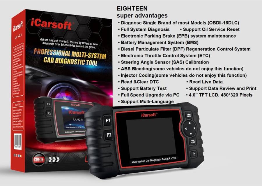 iCarsoft LR V2.0 is a Professional and powerful vehicle fault diagnosis tool developed by iCarsoft Technology Inc. With a 4.0" TFT LCD and unique diagnostic software, it features full ECU diagnosis of single vehicle brand and test modes mainly include: CANBUS, ISO9141, KWP2000, and J1850 etc. It enables technicians to accurately diagnose complex problem