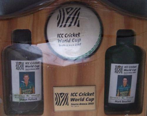 Cricket ball with writing : "ICC Cricket World Cup South Africa 2003"