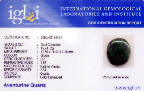 IGLI Certified 15.74 Carat Green Aventurine Stone