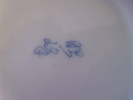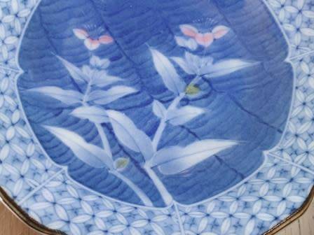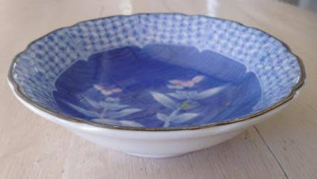 Imari Like Blue Bowl with Pink Flowers 13 cm Across