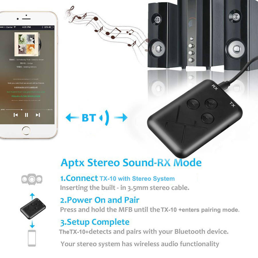 2.Transmitter mode: wirelessly streams audio from your non-bluetooth TV, home stereo system, or CD player to your bluetooth headphones