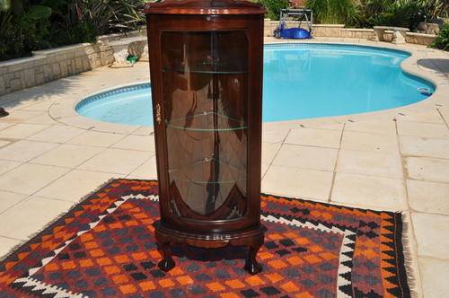 Imbuia Ball & Claw Curved Glass Display Corner Cabinet ---- Collections Only!!!