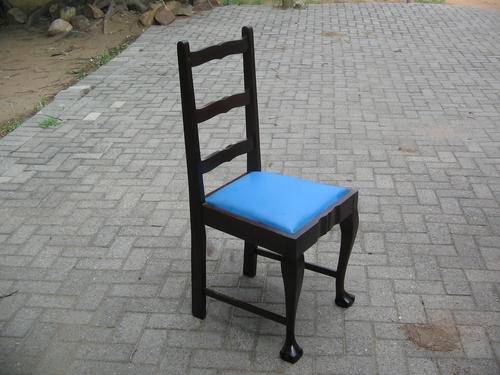 Chairs in need of new upholstery but are sturdy with no loose joints or cracks.