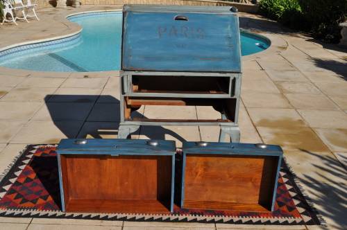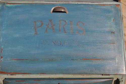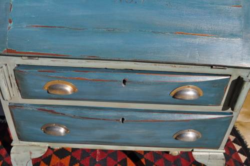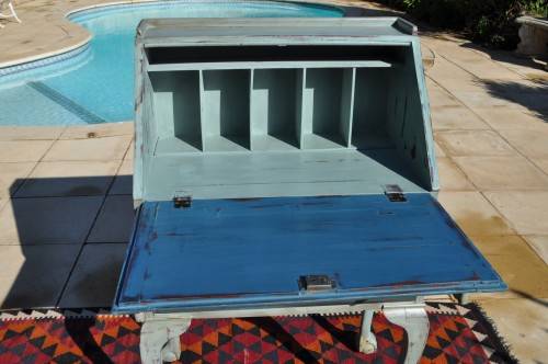 Please Note: the top drawer does not slide in completely, see pics.