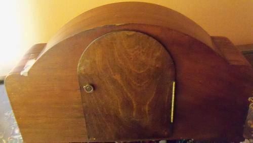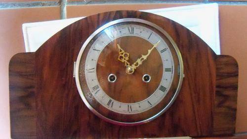 Imbuia mantel clock made for American Swiss Co Cape Town by . It was made by a Co in England and has an Enfield Clock Coy. Working condition.Wind up Clock with key. Working