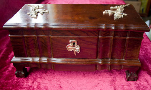 IMBUIA WOODEN KIST - MINIATURE - JEWELLRY BOX - BEAUTIFULLY RESTORED - ALL ORIGINAL PIECES.