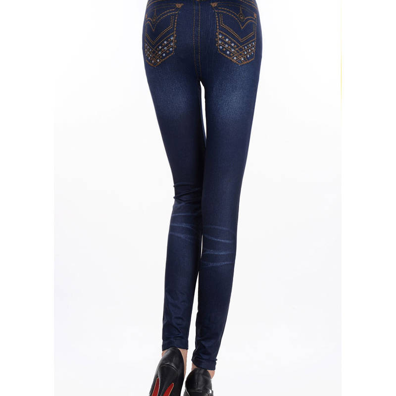 Women's Slim Artificial Denim Elastic Leggings Blue.