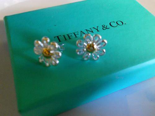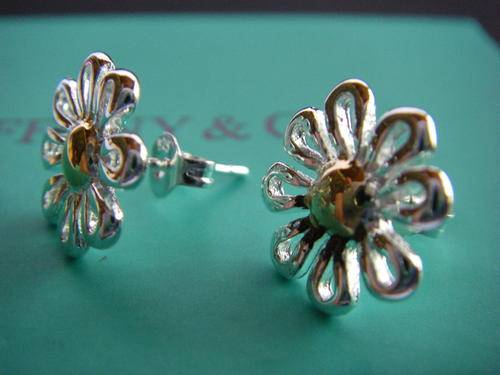 These beautiful earrings match a necklace from the Tiffany & Co range that I am also selling. They are classic Tiffany & Co pieces and are lovely with their simplicity and uncomplicated lines. The golden centre adds a dash of colour to the flower and both the golden tone and the silver catch and reflect the light.