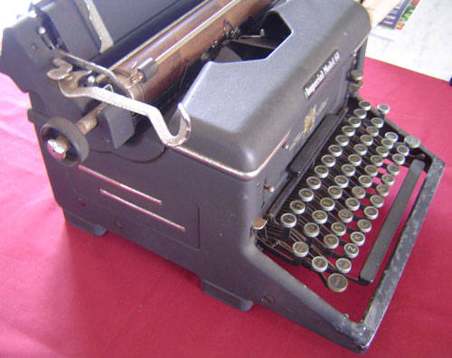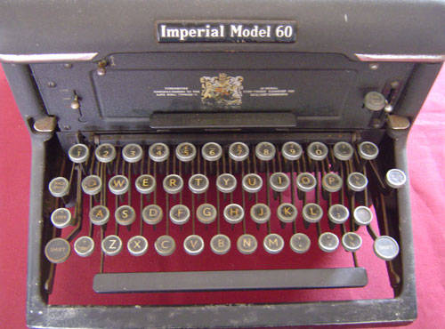An old Imperial model 60 typewriter made by the Imperial typewriter company, Leicester. Marked by appointment to his late Majesty George V. Stands 27cm high and measures approximately 43cm x 37cm. Condition is fair. Some rust on the chrome areas and wear, but in sound mechanical order. Has all the faction keys, a spacebar top and bottom and settings for three colour ribbon. Quite a machine in its day, and a good decor piece for the home office.