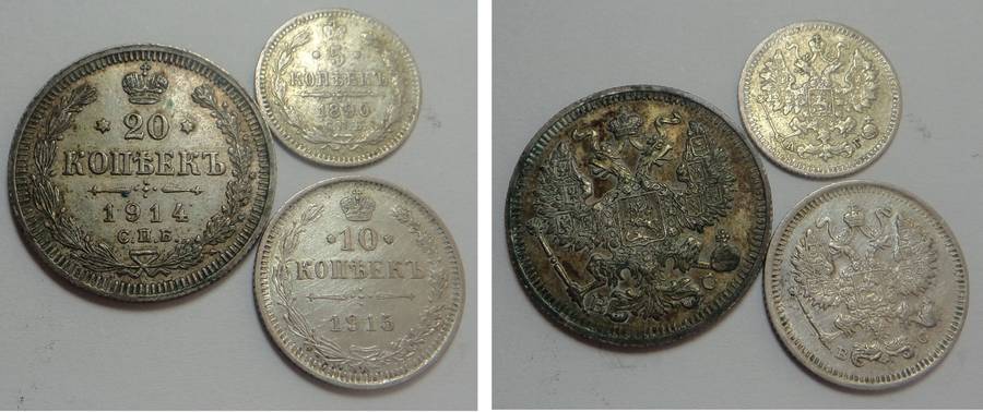 Imperial Russia: Silver 5 (1890), 10 (1915) & 20 Kopeks (1914)