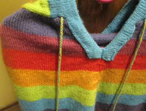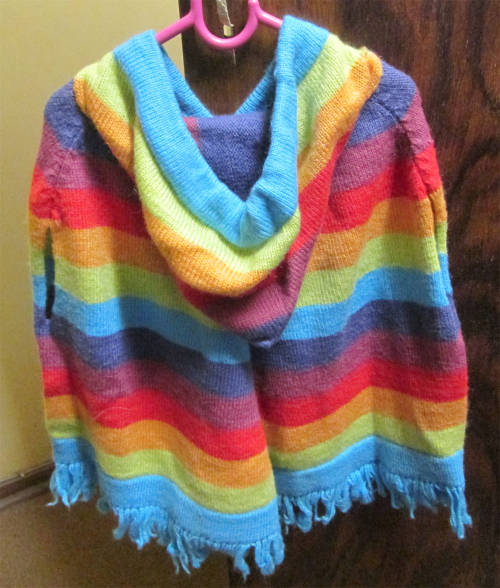 Imported Andes Gifts (Bolivia) - Rainbow Knitted Hooded Poncho.