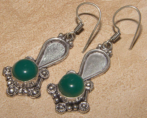 IMPORTED FROM INDIA!! - GORGEOUS NATURAL RARE GREEN ONYX IN STERLING SILVER EARRINGS!!