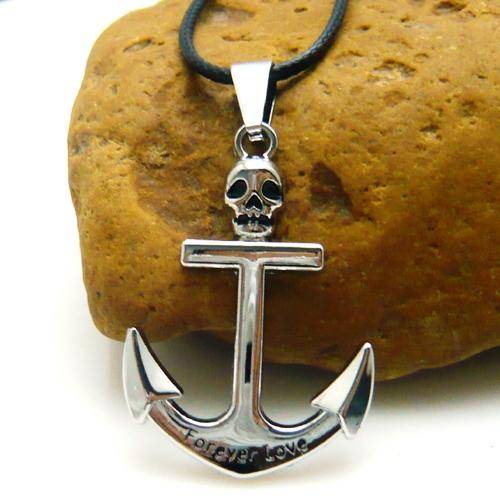 IMPORTED STOCK! Unisex ***SKULL & ANCHOR*** Stainless Steel/Leather Necklace!