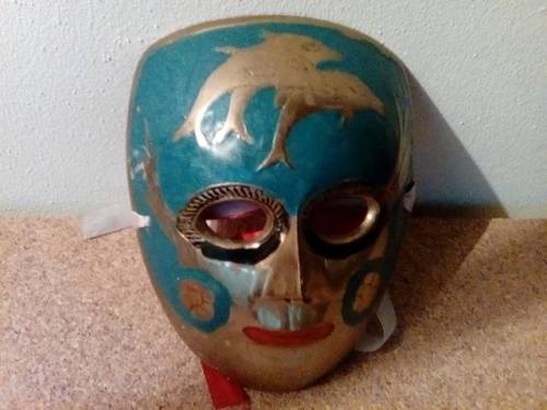 Impressive Brass & Enamel Theatrical Mask