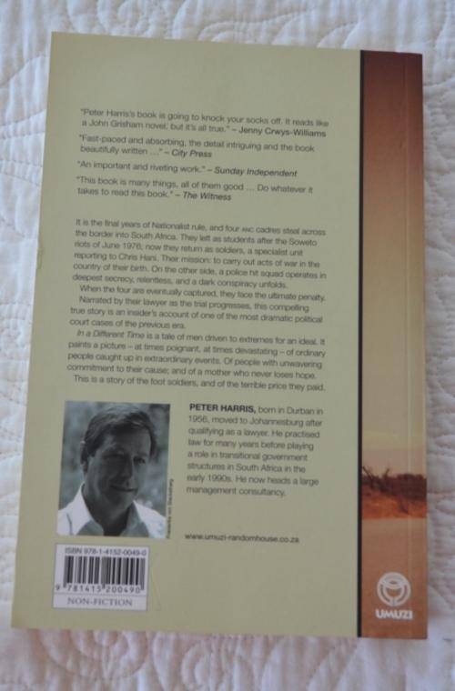 This book tells the story of four young South Africans who embark on a mission that will ultimately take them to Death Row. They are a highly trained and experienced assassination squad reporting directly to Chris Hani.The narrative details their infiltration into the country, their operations, arrest and subsequent trial. These men are the foot soldiers who sacrificed everything. As their trial unfolds with their attorney fighting to save them from the gallows, so too does the story of their own lives and the choices they make. The story is set in a South Africa gripped by unrest and political tension, when the ANC was in exile and repression at its height.It tells of the extraordinary lengths people go to in order to fight for what they believe, and the acts people will commit to preserve the status quo. The characters are linked by bizarre coincidence and tragedy in a true account narrated by their attorney.Woven through the narrative is the construction of a bomb and its journey towards its target, and the circumstances which enable that meeting.