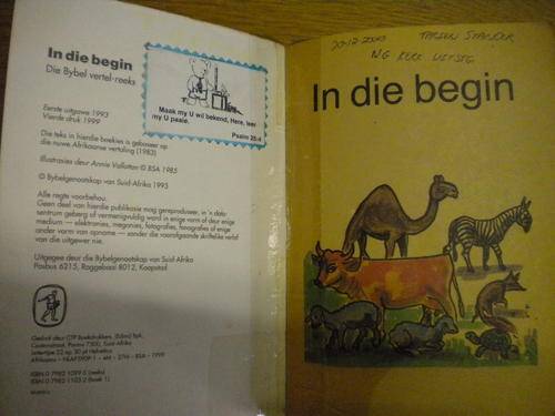 In die begin - Die Bybel vertel-reeks 1. 77 Bladsye. Boekie is op paar plekke met kleefband geheg en toon tekens van slytasie. Onder 1kg.