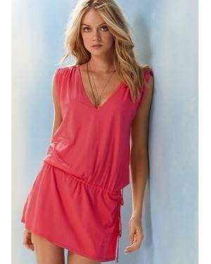 model above usually wears size Medium, Bust Size 34C and is wearing a bikini below the dress