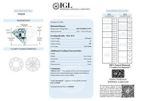 DIASCRIPT ON GIRDLE"Laser Inscription" - appears on the girdle number: IGL G-976659