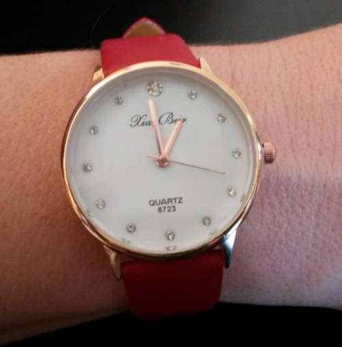 In stock. Late entry.Classic Imitation Diamond Quartz, PU Leather Women Dress Watch.
