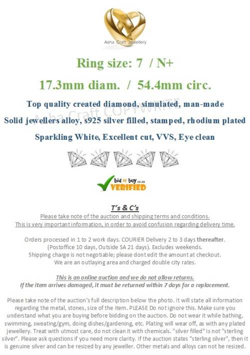 IN STOCK NOW: 1.7ct Cr.Diamond Brilliant Round Solitaire Engagement Ring. Size 7 / N ½