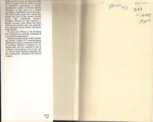THE D/J IS IN POOR CONDITION, LOT'S OF WEAR TO THE EDGES, SHELF- RUBBED, SOME PREVIOUS PRICING & NAME WRITTEN (SEE PIC'S) NO FOXING, INTERIOR CLEAN, BINDING GOOD, O/A A GOOD COPY OF THIS VERY HARD TO FIND BOOK BY THE FAMOUS SOUTH AFRICAN AUTHOR.