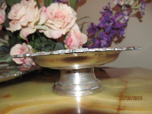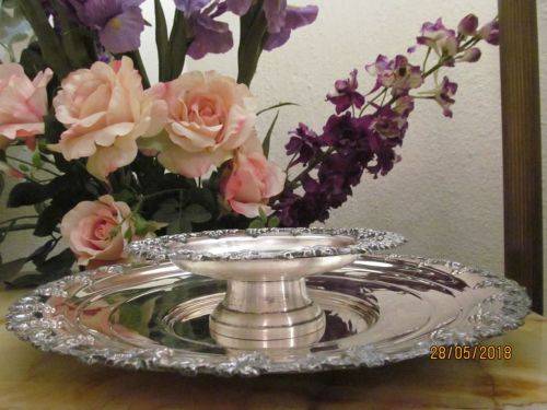 CONDITION : THERE IS SOME FAINT RUBBING OF THE SILVER PLATE INSIDE THE PEDESTAL DISH BUT NOTHING SERIOUS. ASIDE FROM THIS BOTH ITEMS ARE IN PERFECT CONDITION WITH NO DENTS, RUST, DAMAGES ETC